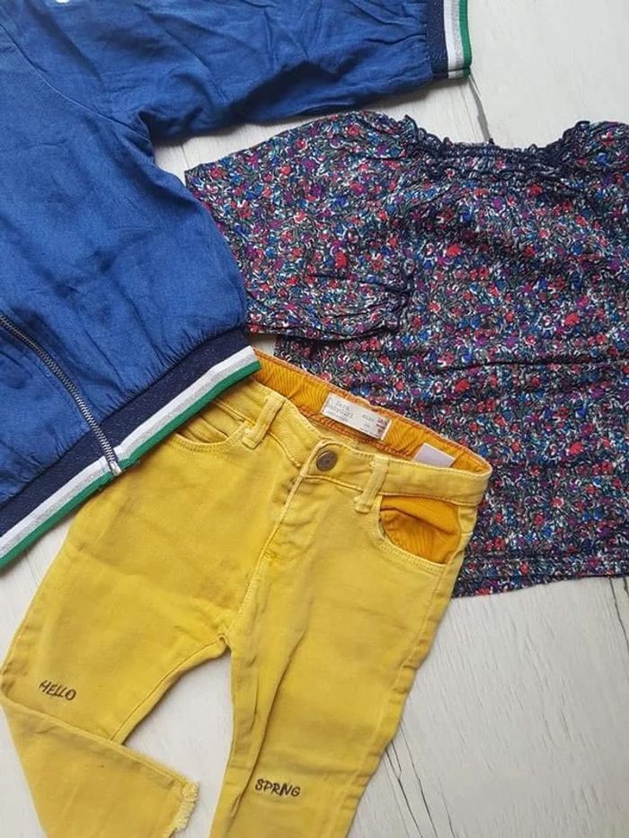 Excellent état. Blouse à fleurs Liberty bout'chou Veste légère storystelling (little cigogne) Jean moutarde Zara effet rock Trop mignon. Taille 2ans. #2anstatiana