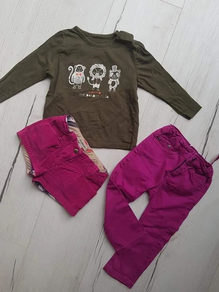 Très bon état. Superbe ensemble 3 pièces. Short velours burberry (petit 3ans) Jean rose fushia lila rose Tee shirt kaki (Je n'ai plus la marque) #2anstatiana #burberry #short #ensemble #2ans