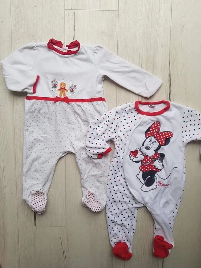 Très bon état peu portés. Pyjamas trop mignons pour l'hiver et noël surtout. Motifs fêtes Disney minnie pain d épice... Sergent major et Disney. Coloris blanc et rouge. Taille 2ans. #2anstatiana