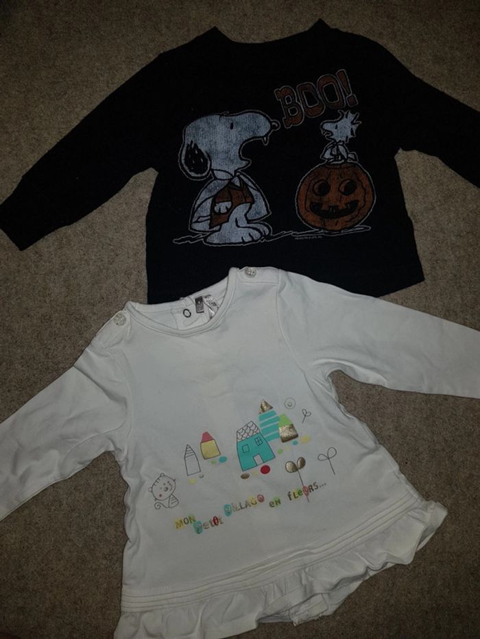 Lot pour petite fille 6mois mi saison hiver. Bon état général. Marques et détails du lot : Tee shirt blanc orchestra Tee shirt bleu kitchoun Robe et son haut assorti pomme framboise Tee shirts noir et blanc snoopy Pantalon velours beige bout'chou Jean bleu obaibi Legging rose grain de blé Tee shirt rose tape à l'oeil #6moistatiana