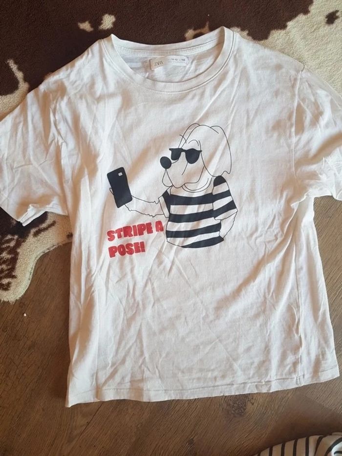 Tres bon état. Zara blanc à motif chien. Mango mariniere avec petite poche grise. Taille 12ans. #12anstristan #mariniere #mango #zara #teeshirts #ete #estival