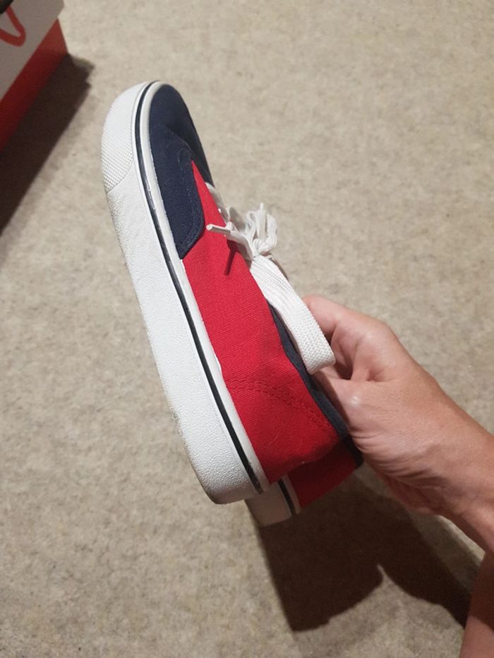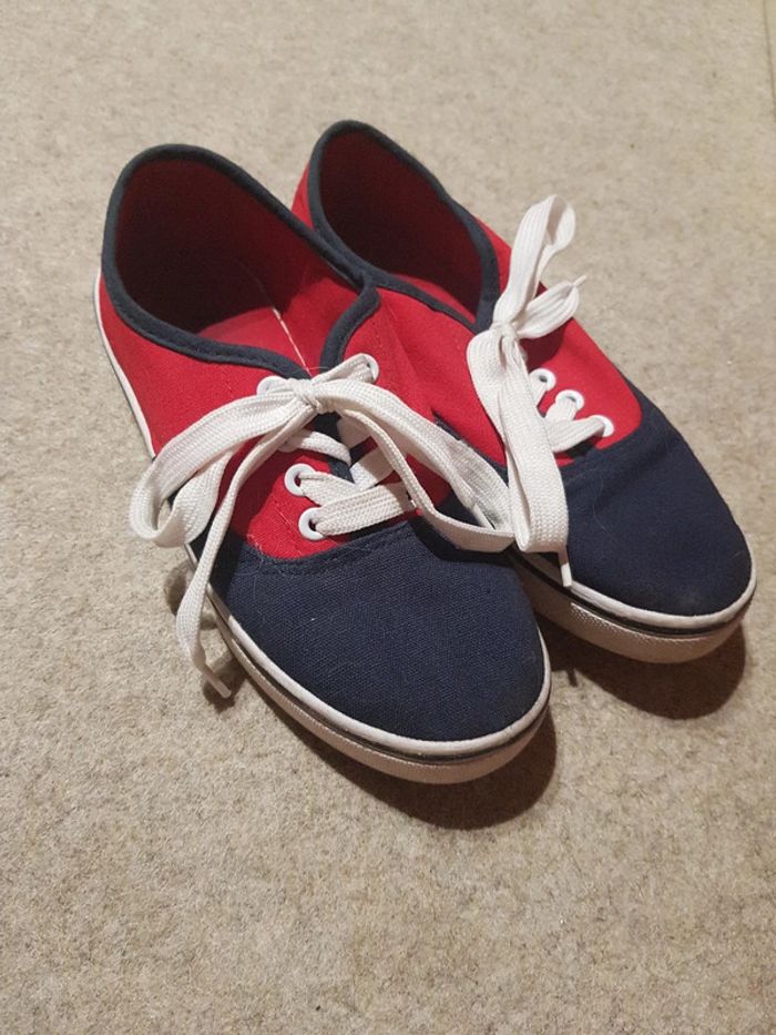 Comme neuves portées une seule fois à une cérémonie. Marque la halle. Pointure 35 coloris blanc rouge bleu marine. Très chouettes style vans. #chaussurestristan #baskets #toile #ceremonie #35 #neuves