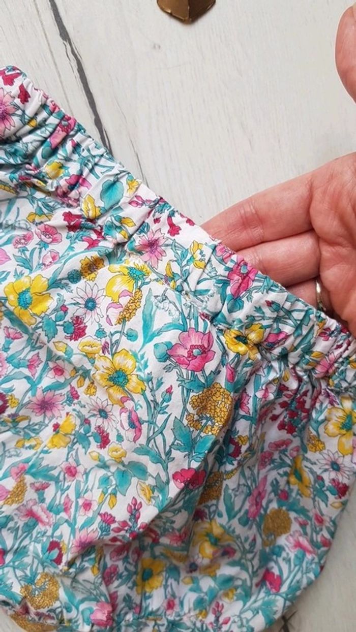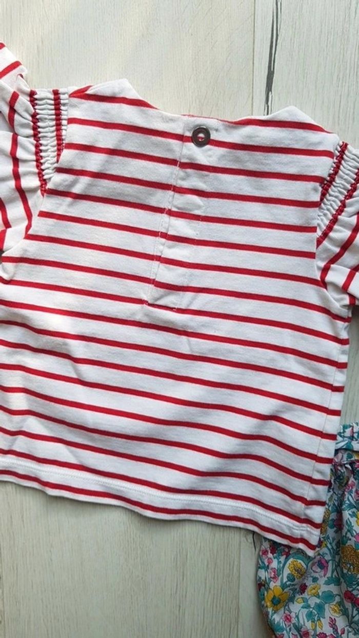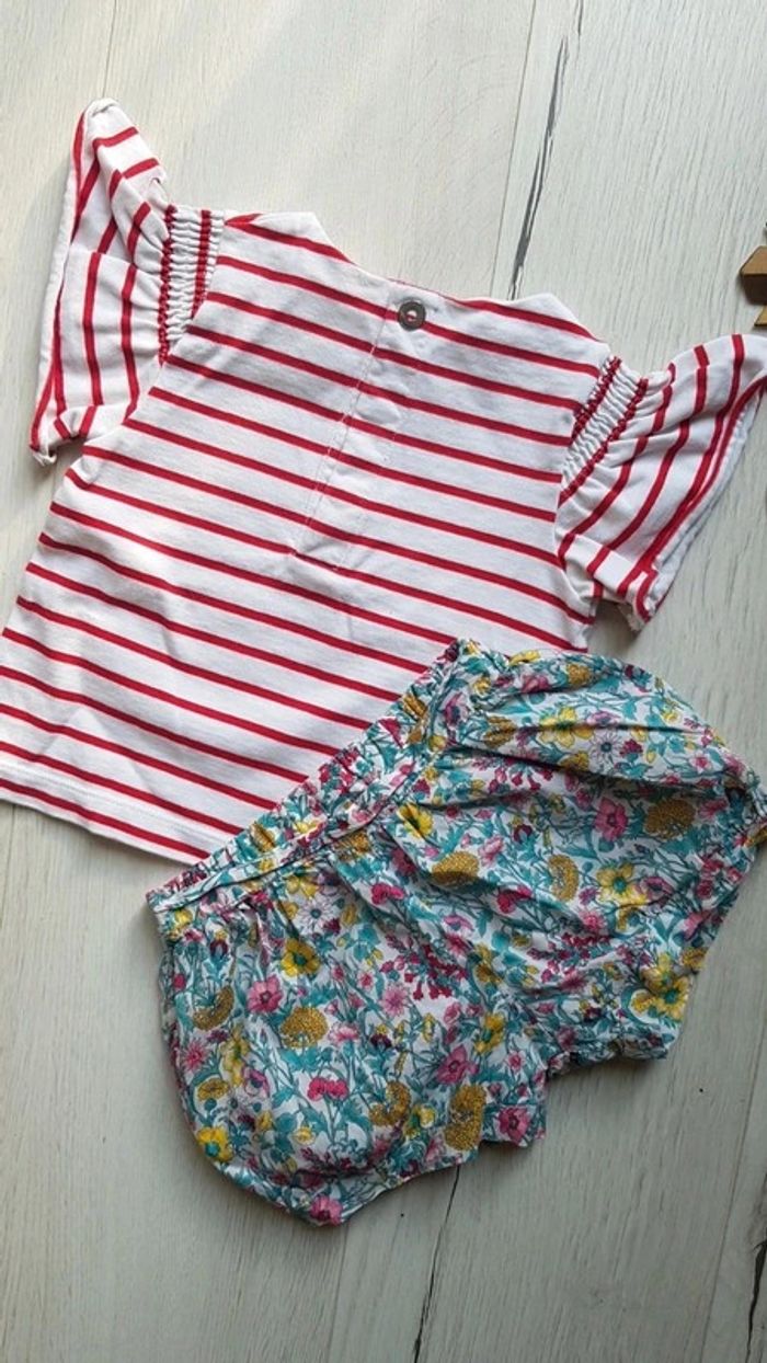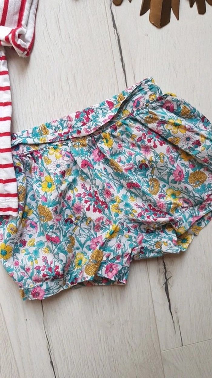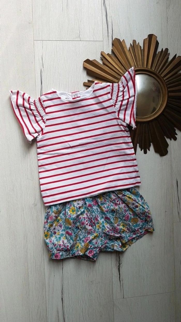 Sublime ensemble 🌹. Short très léger Liberty. Tee shirt avec volants mariniere blanche et rouge. Petite pression à l'arrière. Taille 24 mois jacadi. #2anstatiana #liberty #ete #estival #teeshirts #bermuda #ensemble #jacadi