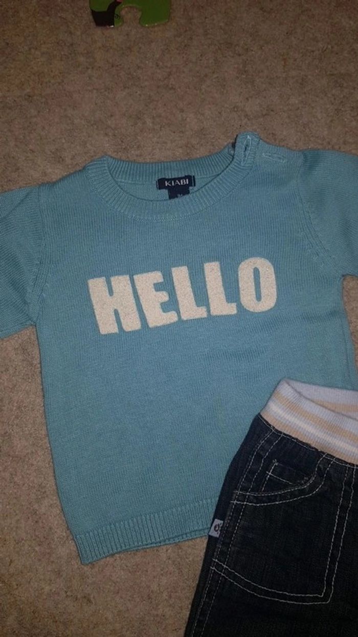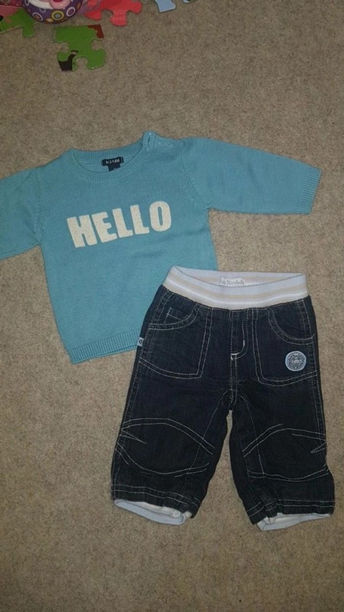 Excellent état comme neuf. Pull kiabi et jean kimbaloo. Taille 1 mois garçon. #1moistristan #pull #jean #kiabi #hiver #garçon