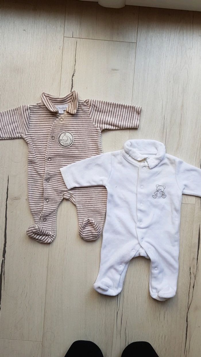 Lot de 2 pyjamas naissance velours mixtes - photo numéro 1