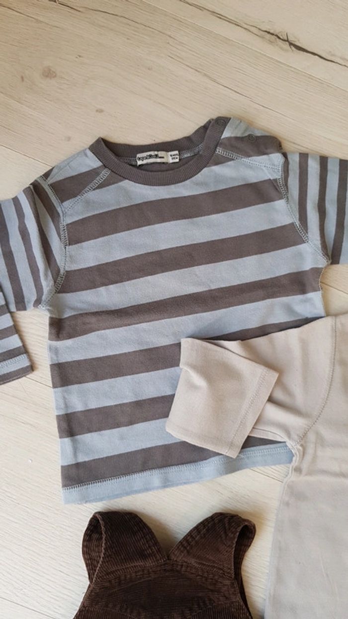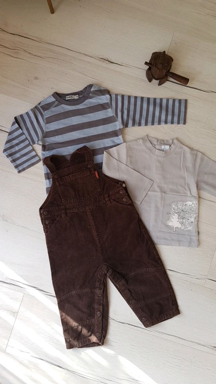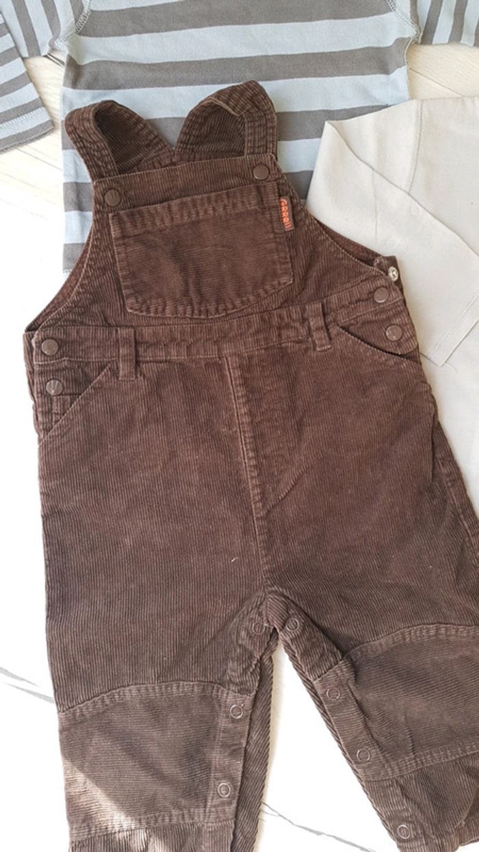 Trop mignon. Salopette marron velours côtelé tout compte fait Tee shirt à rayures tape à l'oeil Tee shirt obaibi gris #18moistristan #salopette #18mois #tao #tapealoeil #teeshirts #misaison #hiver #velours #obaibi #toutcomptefait