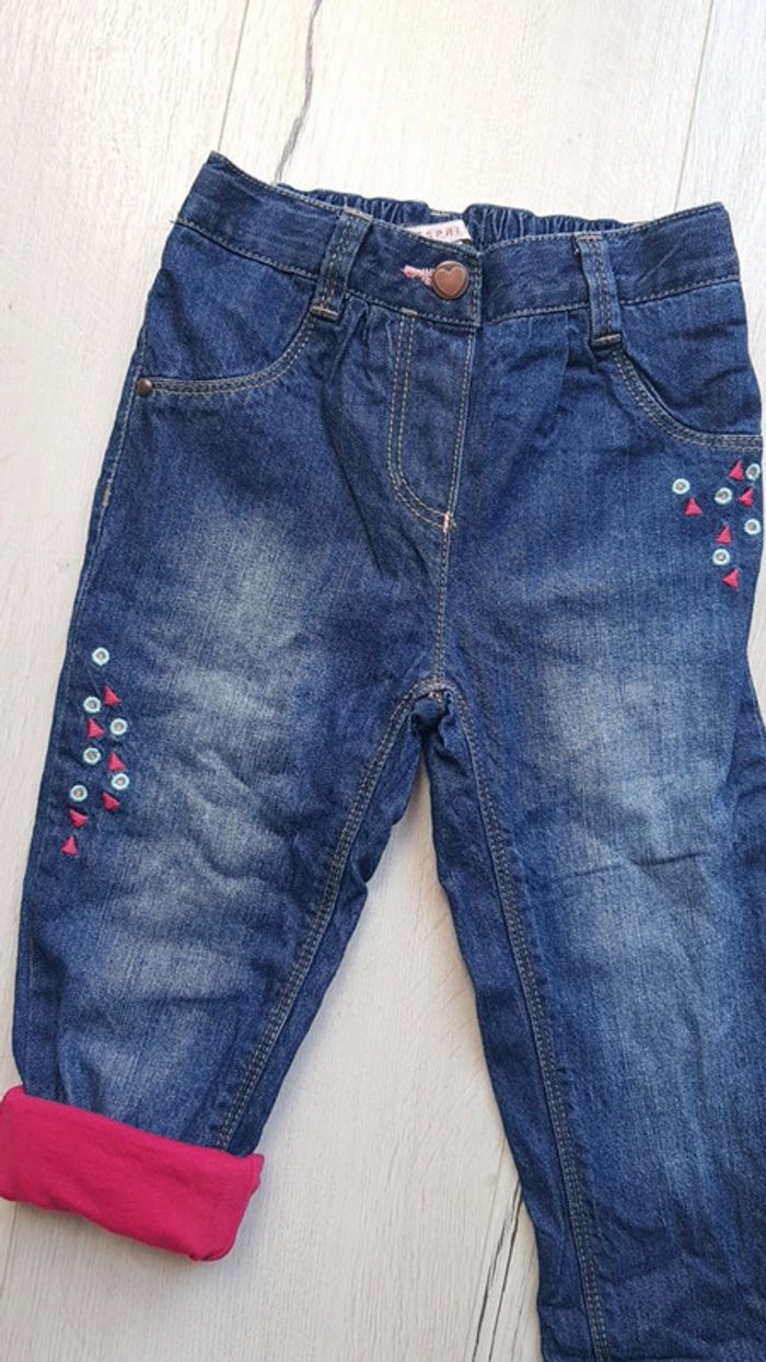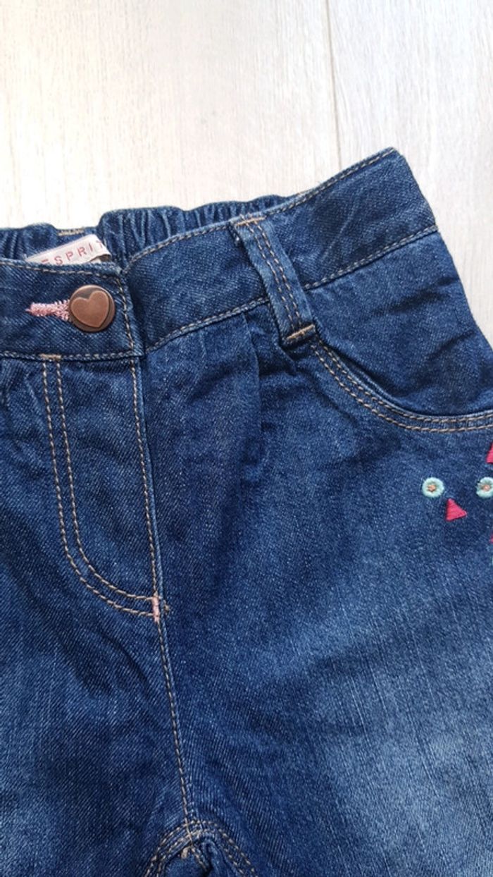 Comme neuf porté 1fois. Magnifique jean bleu intérieur rose. Esprit 18mois. Petites broderies recto verso. Bouton forme coeur. #18moistatiana #esprit #jean #slim #fille #18mois