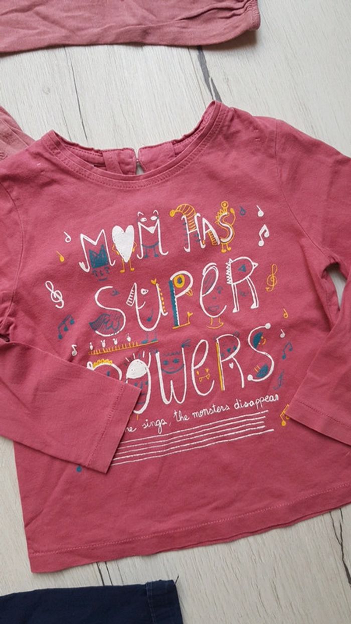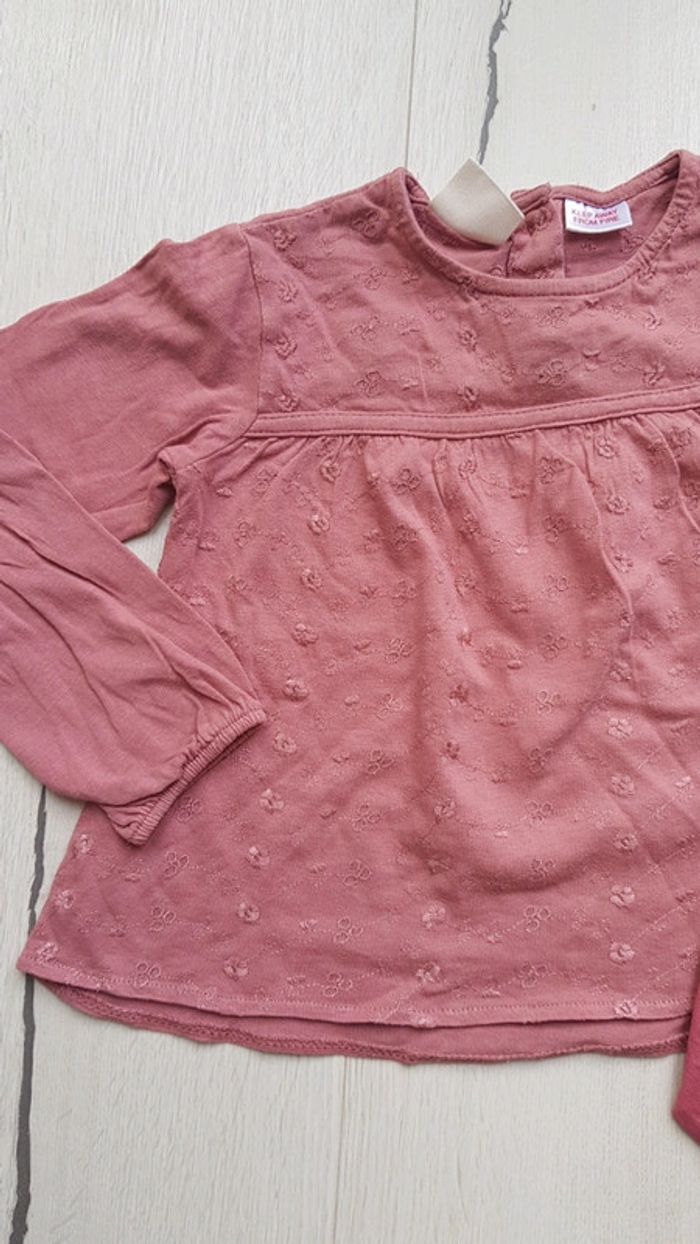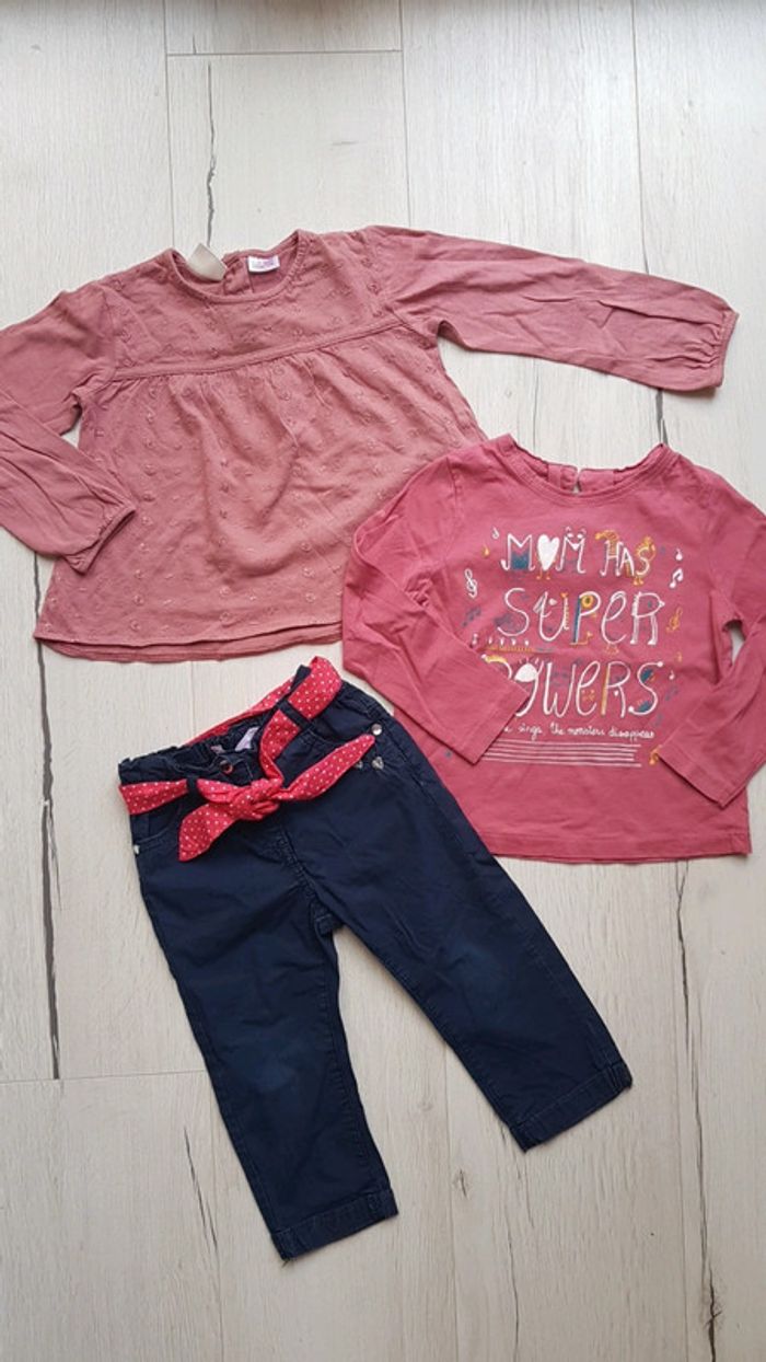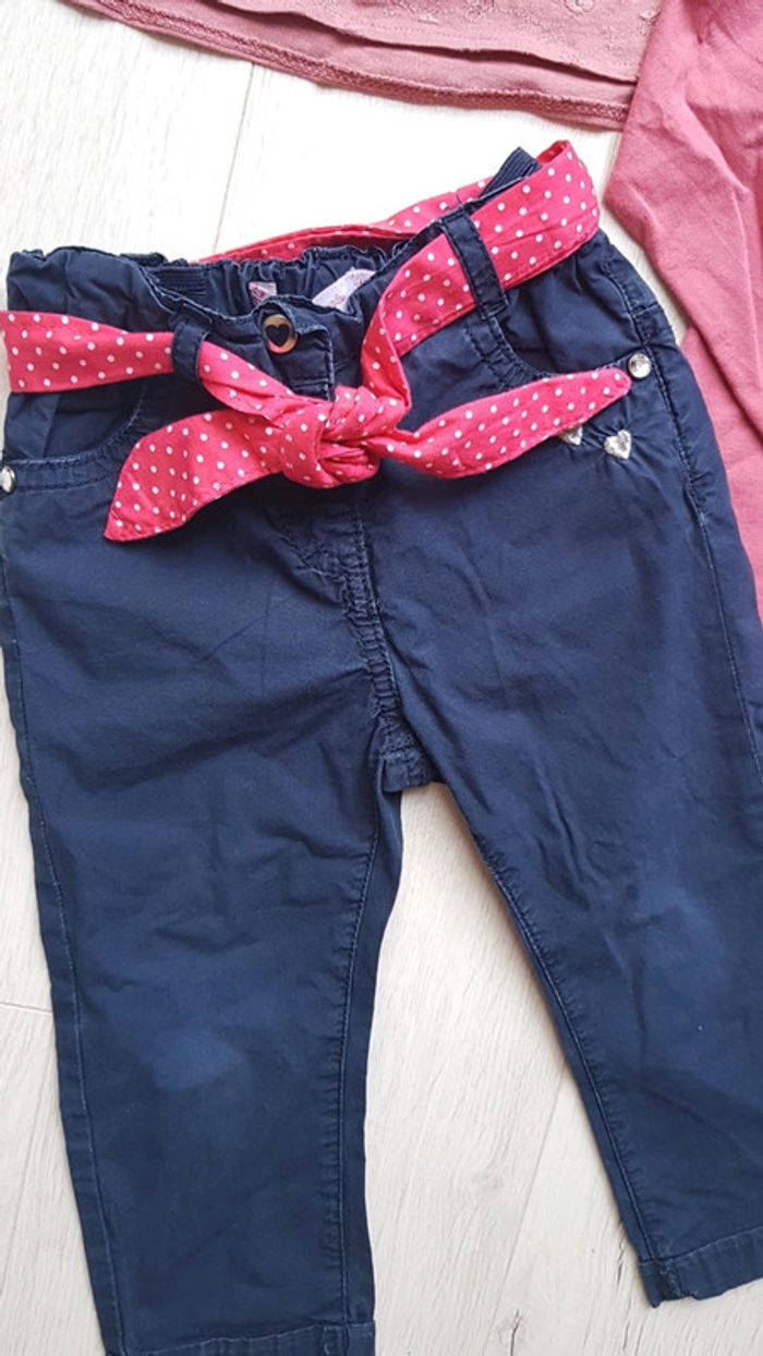 Très bon état. 2 tee shirts vieux rose manches longues Zara 18/24mois Pantalon fin gemo bleu marine avec broderies et petite ceinture. #18moistatiana #pantalon #teeshirt #pull #rose #gemo #Zara #teeshirts
