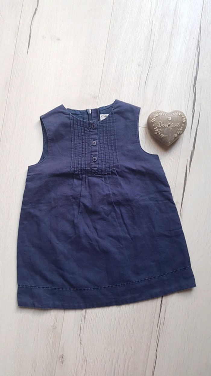 Robe bleu marine cyrillus 18mois lin coton - photo numéro 1