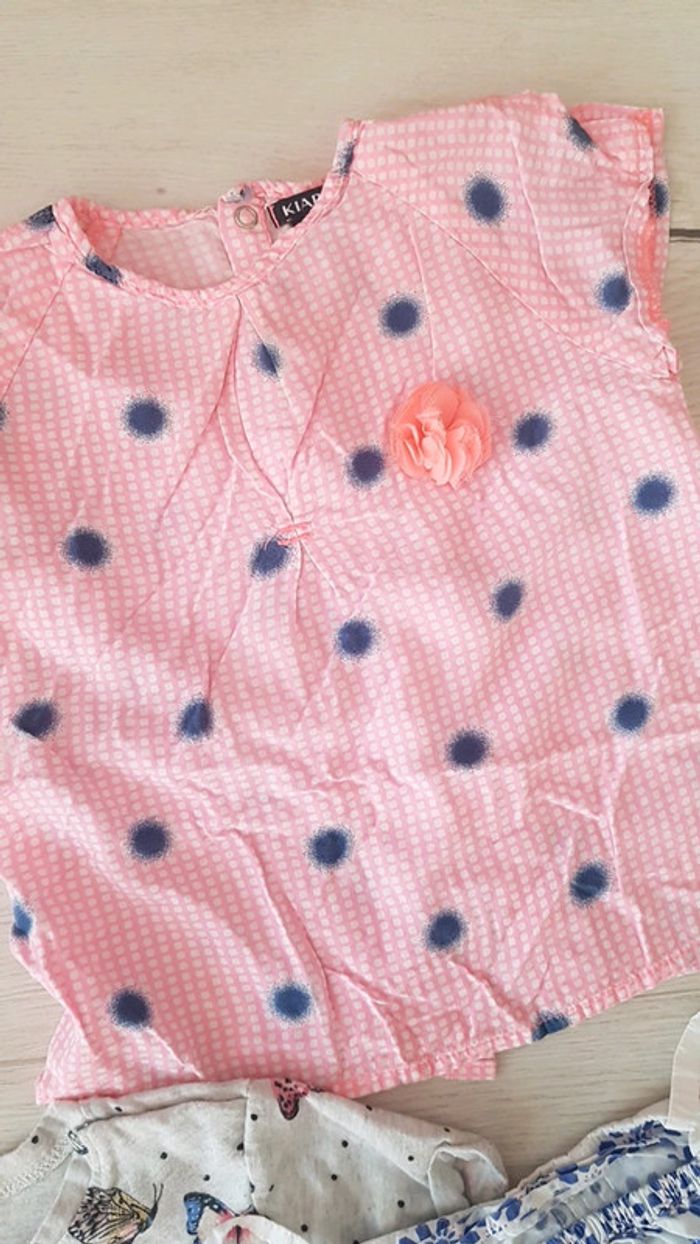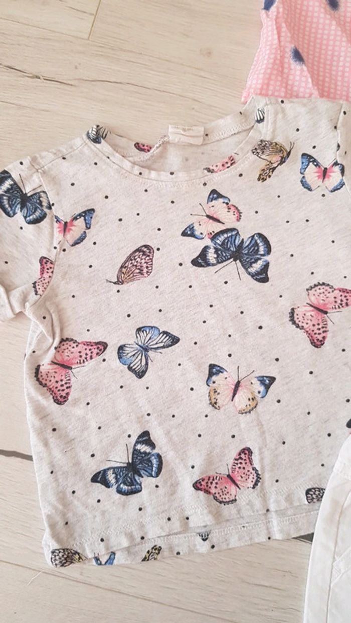 Excellent état. Marques kiabi obaibi grain de blé et h&m. Tee shirts blouses et beemuda. Jolis motifs fleurs flashy roses en relief papillons... #18moistatiana #teeshirts #ete #estival #bermuda #blouses #18mois
