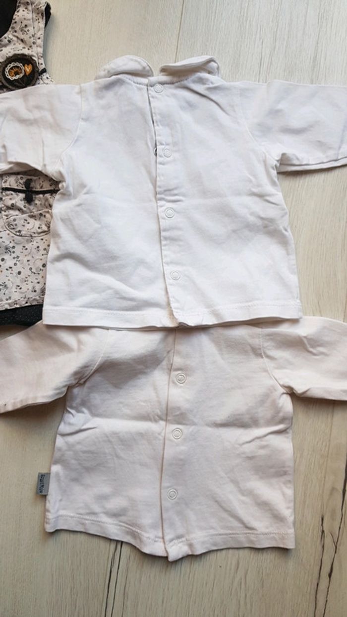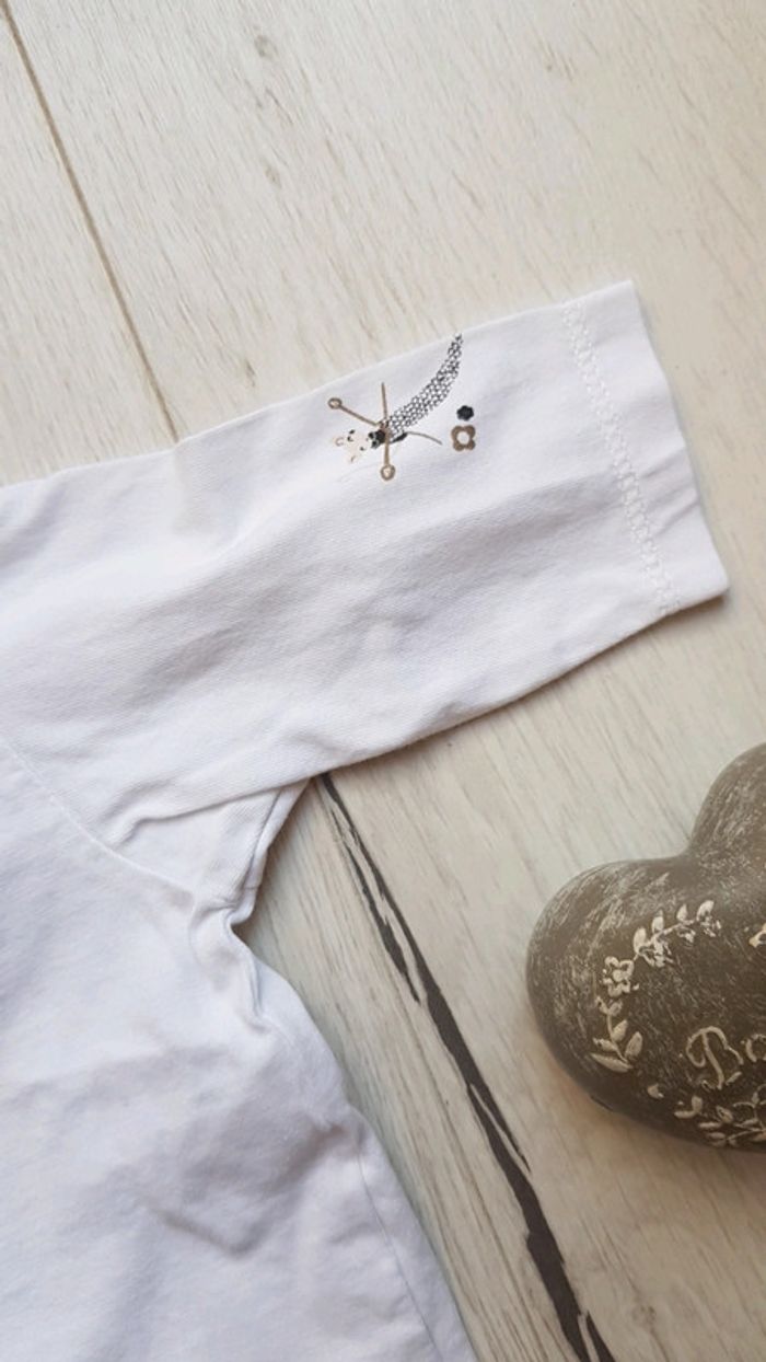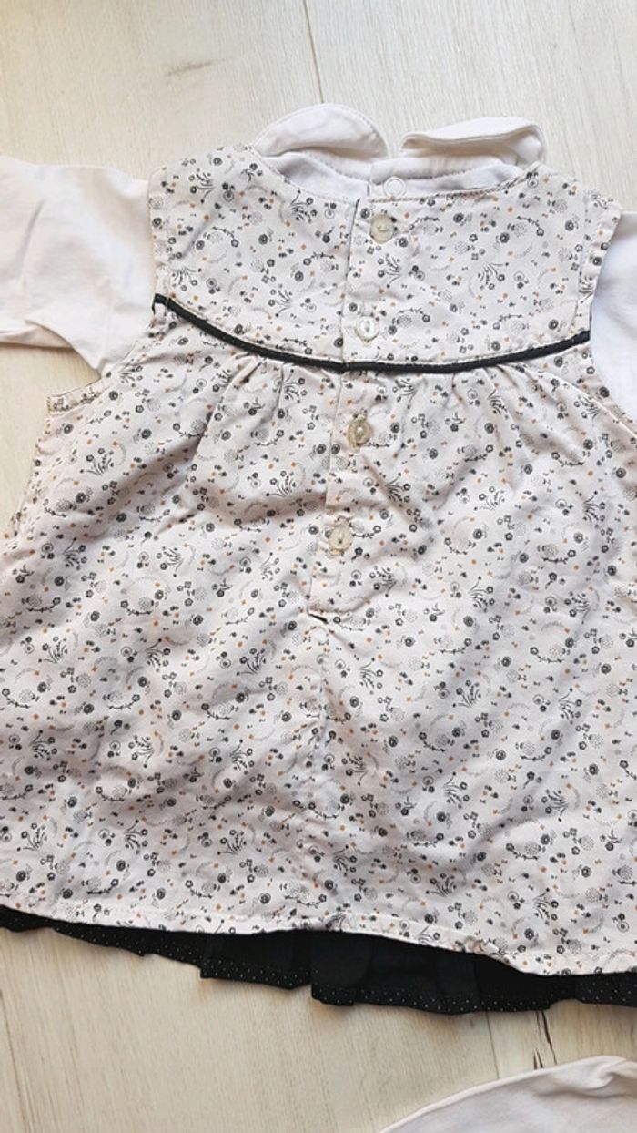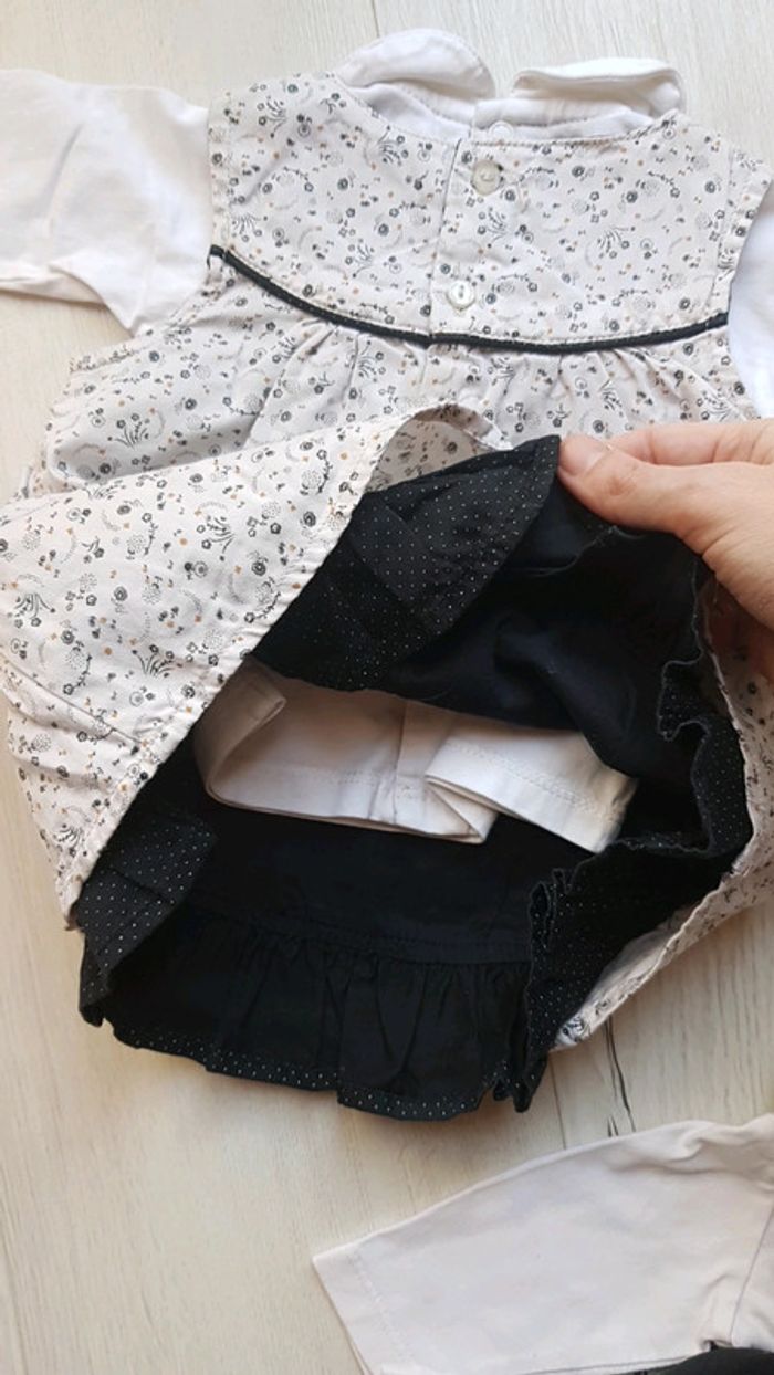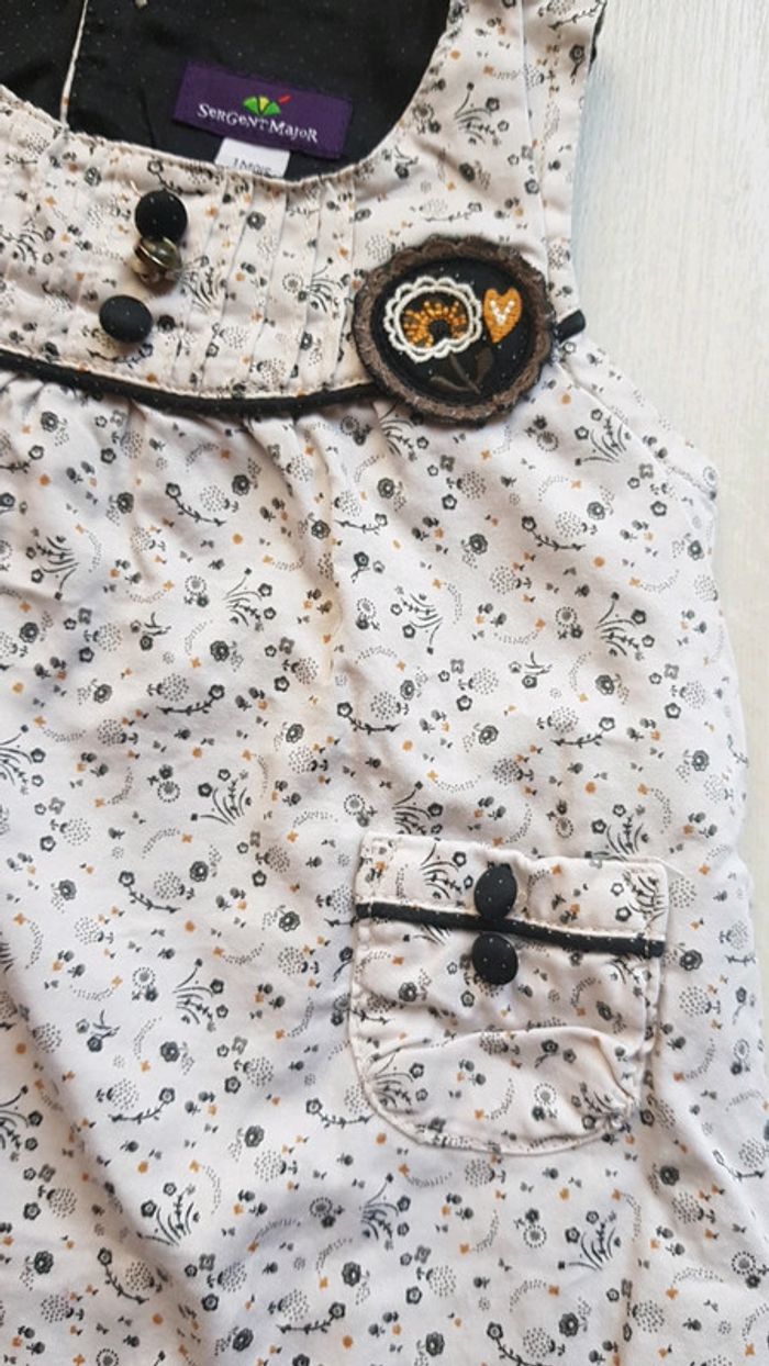 Très bon état à peine porté. Sergent major motifs assortis. Robe et 2 tee shirts manches longues à motifs brodés et boutons à l'arrière pour enfilage facile. Coloris noir et blanc. #1moistatiana #Ensemble #1mois #robe #teeshirts #fille #sergentmajor #sm