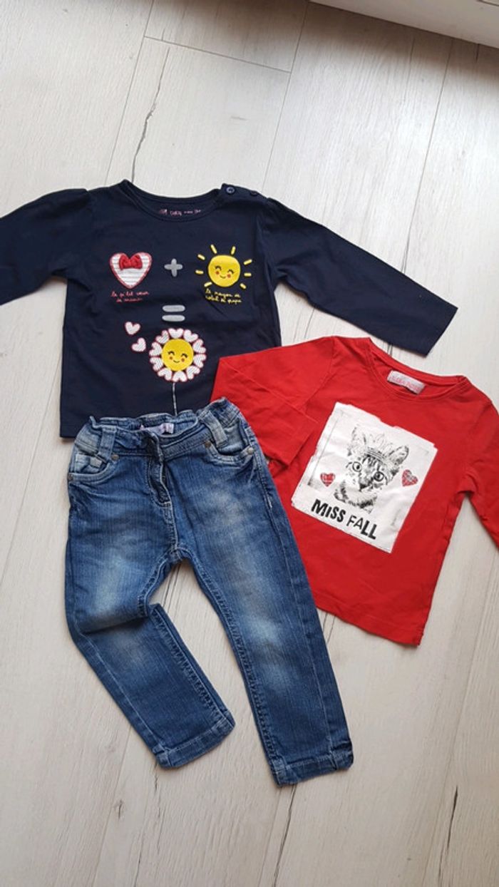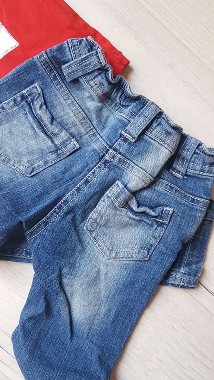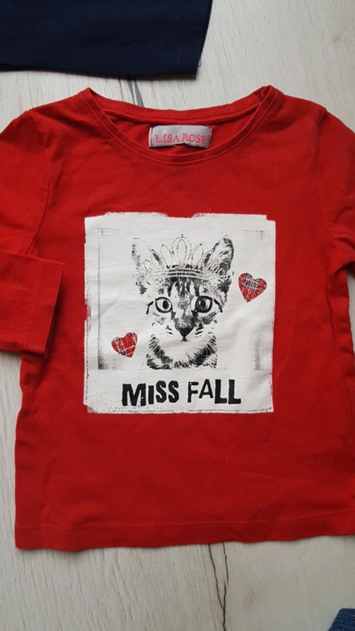 Comme neuf porté 1 seule fois chaque. Marques gemo et lila rose. Tee shirt marine à épaules bouffantes + un rouge à motif chat. Jean slim bleu. Trop mignon 😍😍😍. #2anstatiana #gemo #lilarose #jean #slim #teeshirts