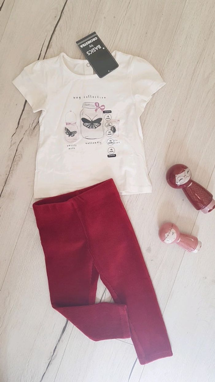Sublime ensemble. Tee shirt et petit legging côtelé velours rouge/bordeau. Neuf étiqueté 18mois orchestra. #18moistatiana #orchestra #fille #misaison #legging #teeshirt
