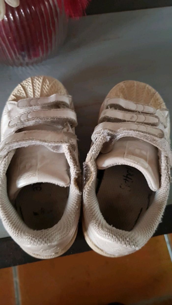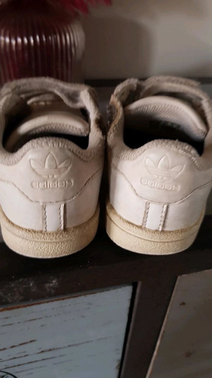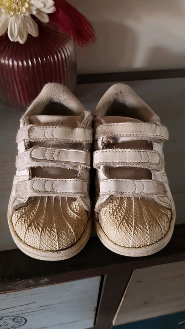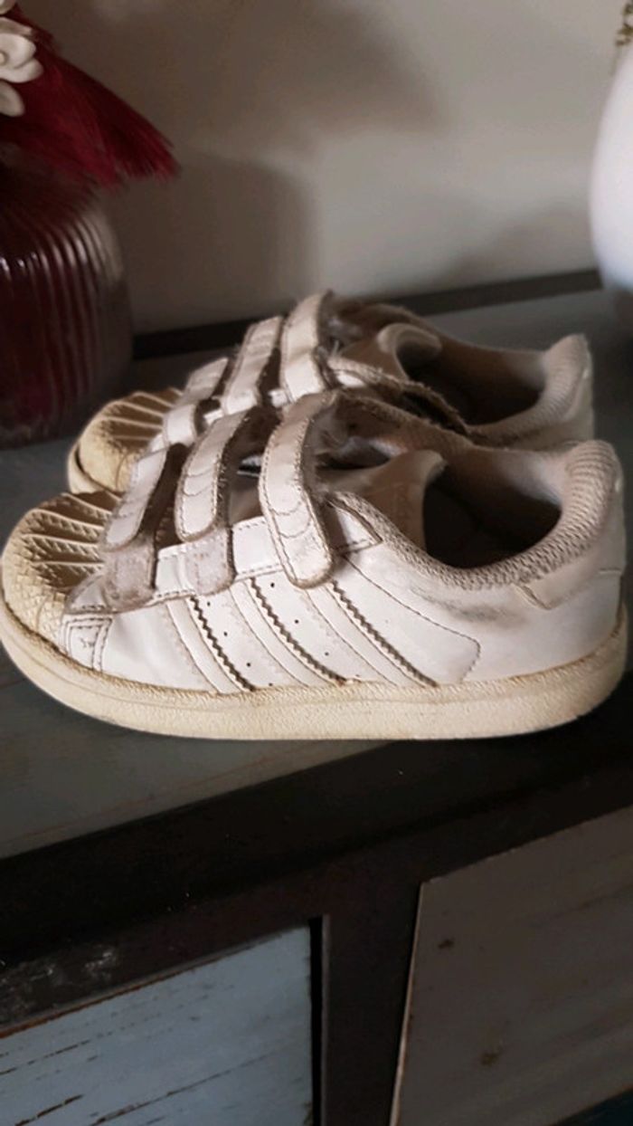 Bien portées. Blanches à scratchs pointure 25 et demi. Adidas. #chaussurestatiana #adidas #baskets #25 #scratchs