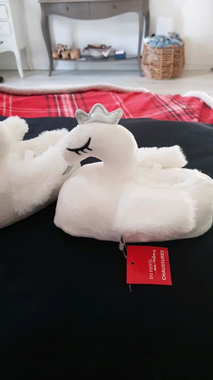 Chaussons douillets neufs. Cygnes blancs. Offerts trop petits à ma fille. Indiquent 26/27 mais ça taille plutôt 23/24. C'est pour cela que ma fille n'a pu les porter, à son grand désespoir. #chaussurestatiana #chaussons #cygne #dpam #dupareilaumeme #23 #24