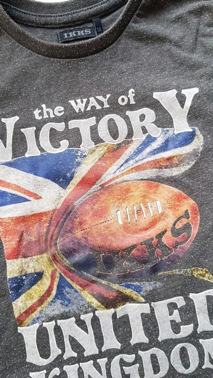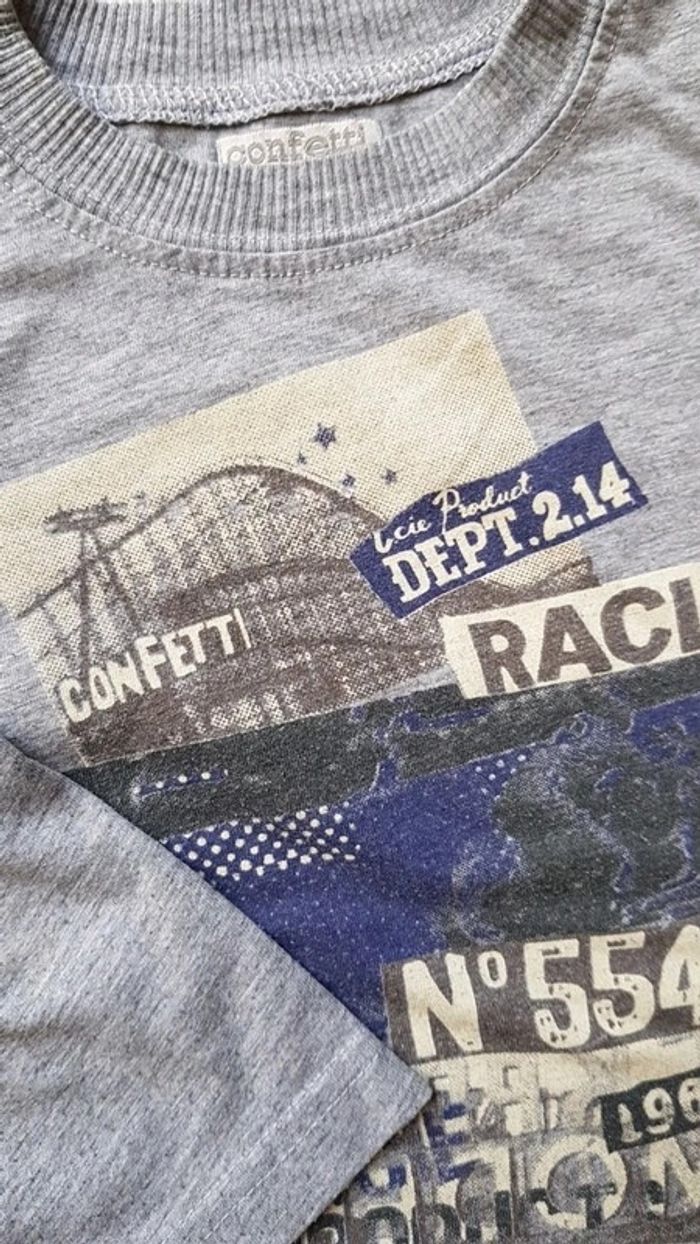 Marques ikks et confetti. Les bouloches font parti du tee shirt d'origine pour le ikks 😉. C est le style. Motif au verso (attention petite tâche de peinture sur le poignet de l'une des manches du ikks). Garçon 3 ans coloris gris et rouge. #3anstristan #ikks #confetti #teeshirt #garcon