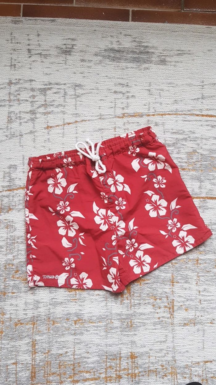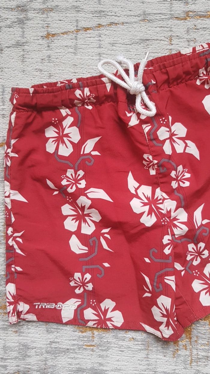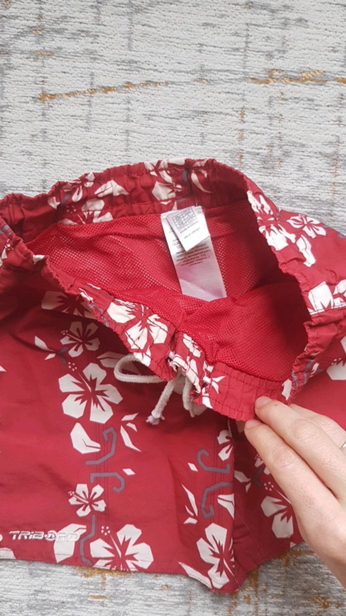 Très bon état. Maillot de bain estival. Peut aussi faire office de bermuda. Jolis motifs coloris blanc et rouge. Tribord oxylane #5anstristan #plage #maillot #short #oxylane #tribord