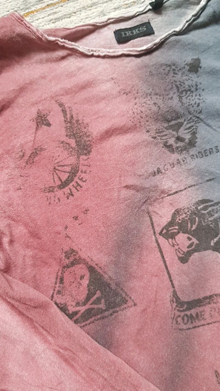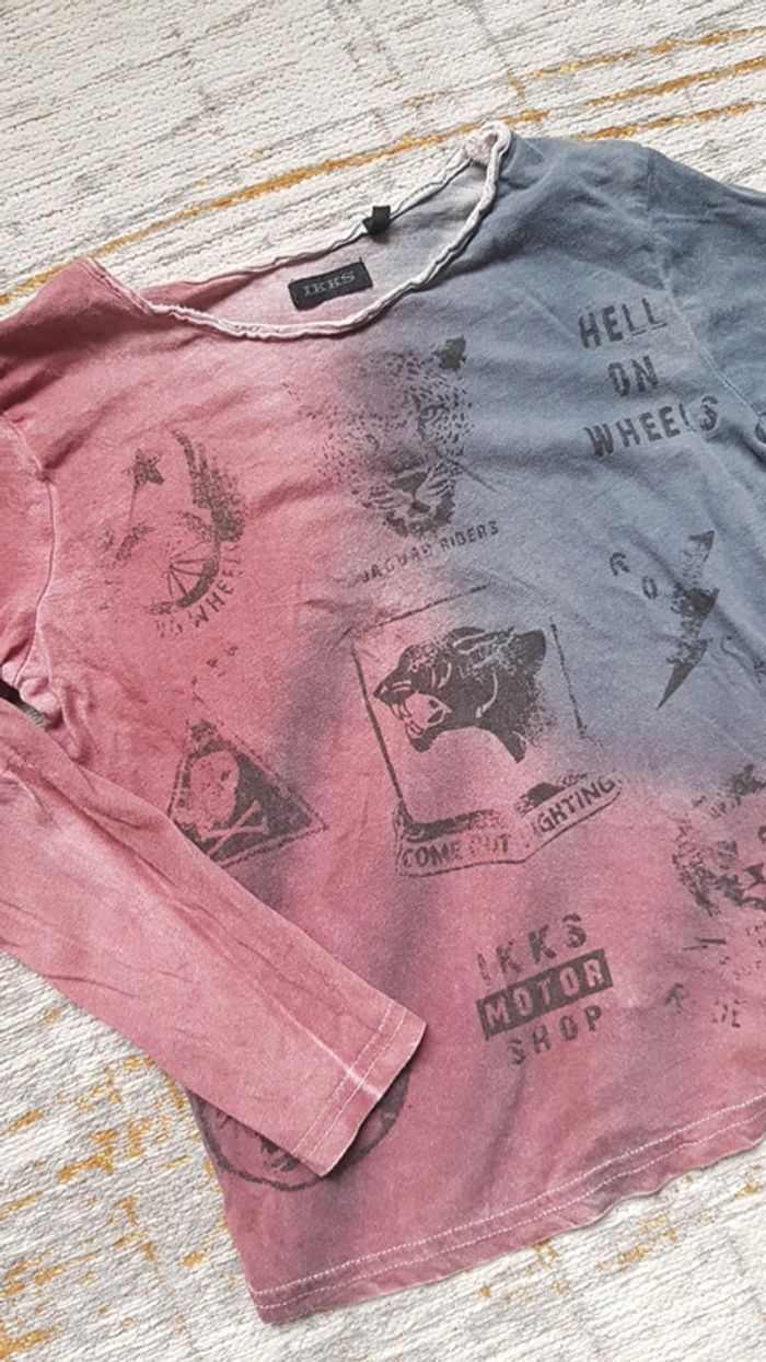 Très bon état. Effet polo rose avec motif au verso marque kidkanai Effet rose délavé pour le ikks. #5anstristan #ikks #kidkanai #rose #teeshirt