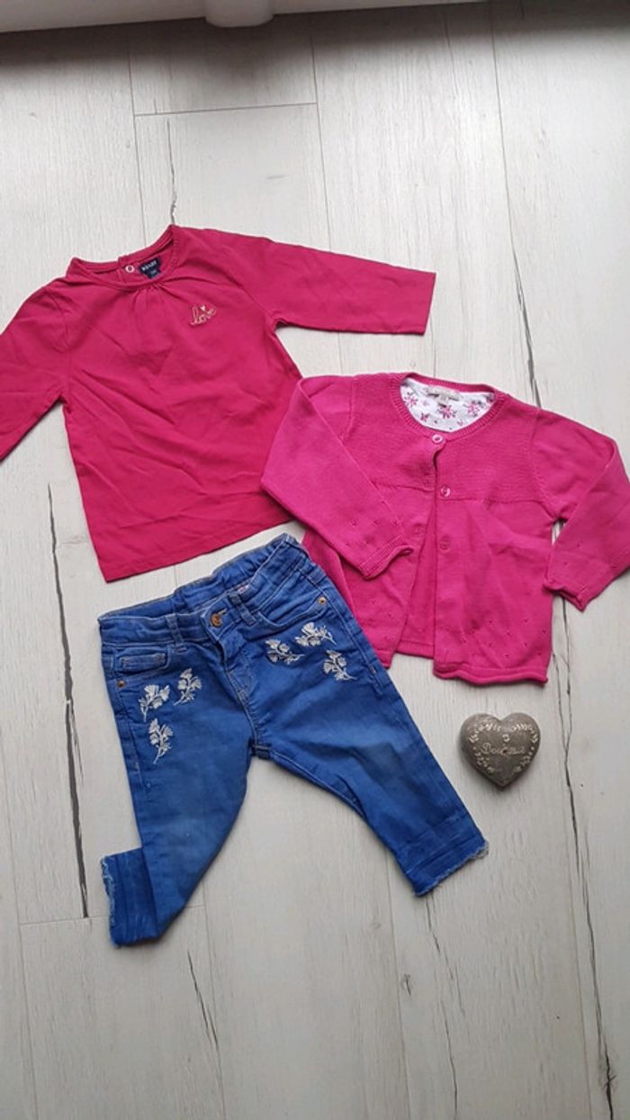 Excellent état. Superbes articles fille 12 mois. Tee shirt kiabi, jean slim fashion à souhait Zara et 1 gilet grain de blé. Jolis coloris bleu et rose. #12moistatiana #ensembles #fille #hiver #tresbonetat #vintedstyle #zara #zaraaddict #graindeble #tae #tapealoeil #tao #mariniere #rayures
