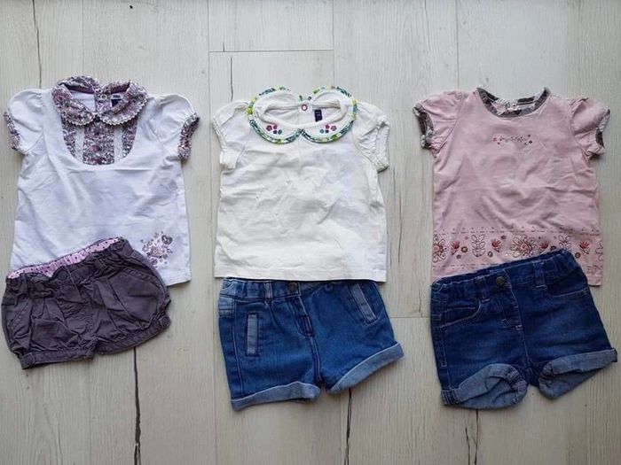 Superbe lot de 3 ensembles 9mois. Les hauts polos sont de marque sergent major. Les shorts de diverses marques : tao... Trop mignons. #9moistatiana #sergentmajor #sm #ensembles #fille #9mois #tao #tapealoeil #vinted #vintedstyle #tresbonetat