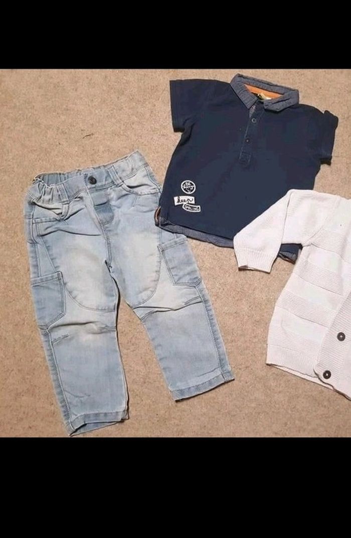 Superbe lot tape à l'oeil. Jean bleu ciel stylé et polo bleu marine. #18moistristan #tae #tapealoeil #jeanslim #bleumarine #gilet #vintedstyle #tresbonetat #hiver #garçon #polo