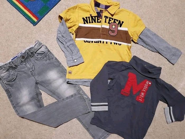 Très bon état. Superbes coloris. Jean slim, pull col roulé et polo effet superposition catimini. #5anstristan #catimini #catimistyle #pantalon #slim #jeanslim #okaidi #tae #tapealoeil