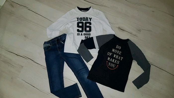 Excellent état. Marques ikks et okaidi (tee shirt blanc). Jean slim et 2 hauts manches longues. Hyper fashion. #8anstristan #ikks #slim #jeanslim #okaidi