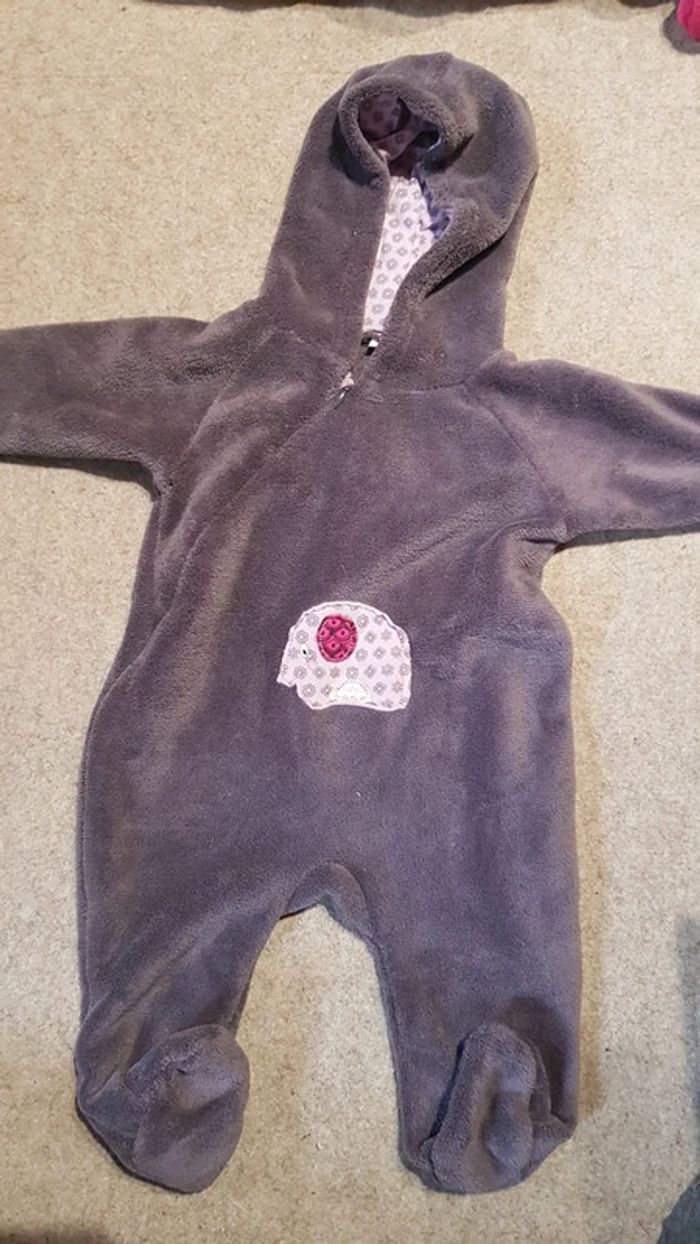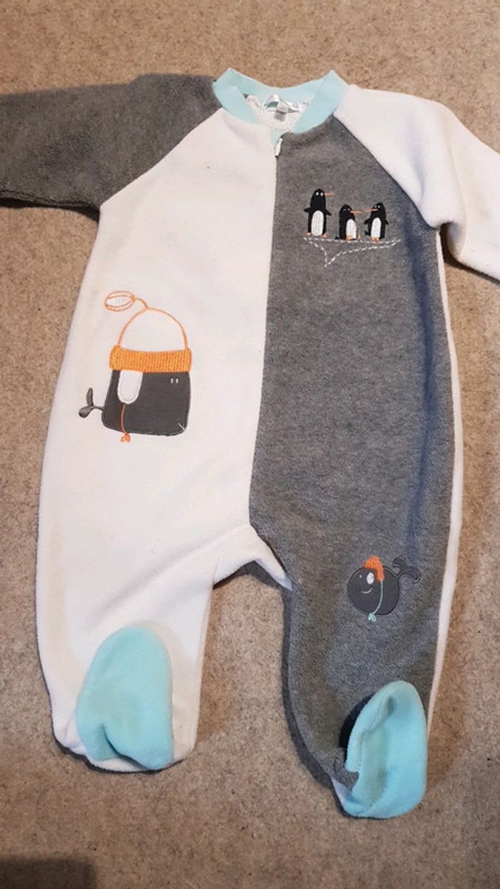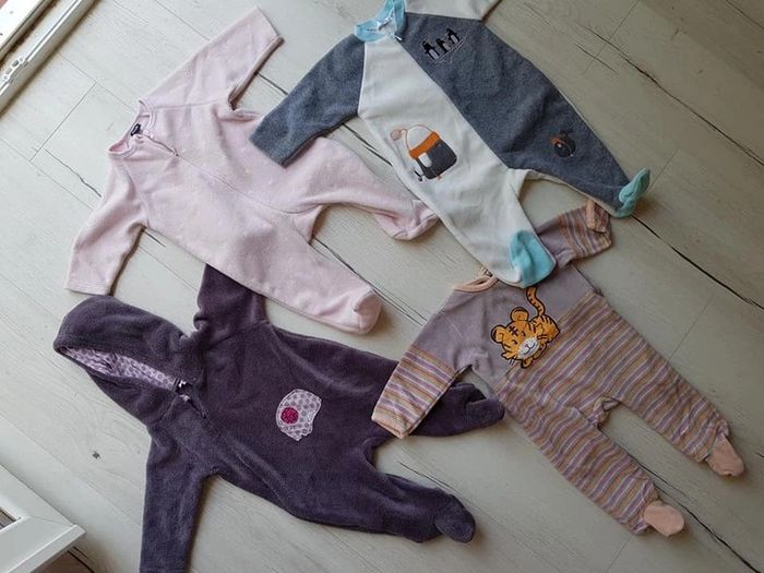 Excellent état, chauds et douillets. Très pratiques, même pour l'exterieur dans le cosy. 3 surpyjamas kiabi kitchoun et pommette 1 pyjama manon et valentin. Coloris violine rose pale blanc gris et beige. #9moistatiana