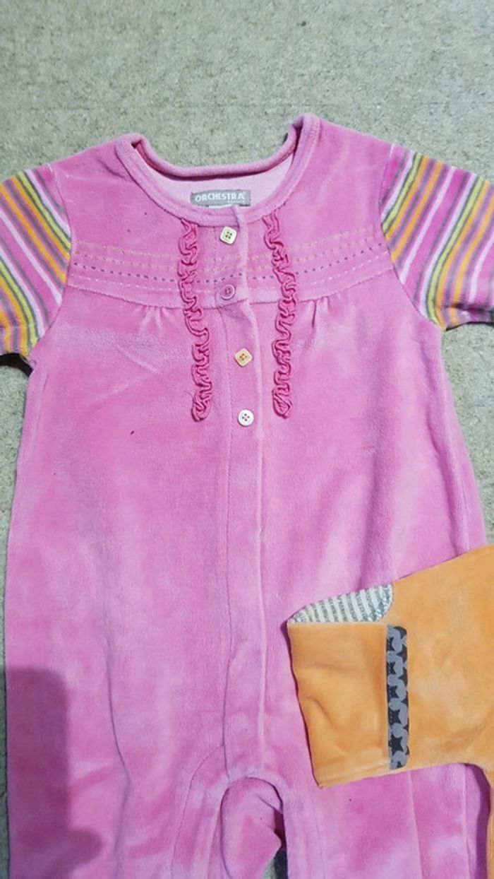 Très bon état. En velours tout doux. Coloris rose et orange. Marques orchestra et kitchoun. #9moistatiana #pyjamasvelours #pyjama #orchestra #orchestraaddict