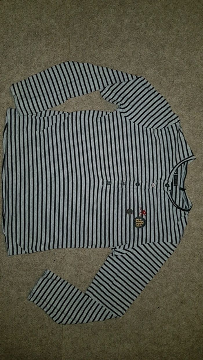Très bon état. Tissu extensible agréable à porter. Rayures style mariniere gris et noir. Boutons et petits écussons. Ikks 8ans #8anstristan #ikks #mancheslongues #été #estival #vintedstyle #vintedfrance #vinted #tresbonetat #teeshirts