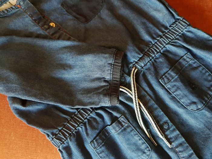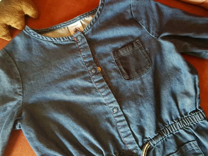 Du plus bel effet. Combinaison effet jean avec pressions jusque l'entre jambe, poches et cordage au niveau de la taille. Marque petit bateau. #12moistatiana #combinaison #petitbateau #fille #styleaddict #vinted #tresbonetat #vintedstyle #vintedaddict