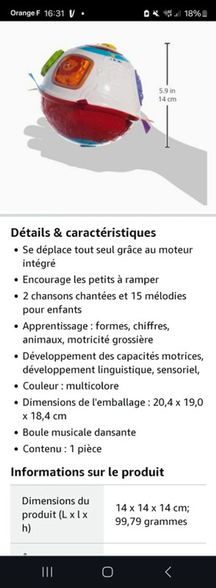En excellent état. Roule toute seule en musique. #13aure13joueteveil #balllemagiqueeveil #rouliballemagiquevtech