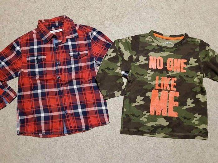 Très bon etat. Marque monoprix pour la chemise à carreaux effet bûcheron. Marque kidkanai pour le tee shirt esprit camouflage. Coloris rouge marine vert beige. #4anstristan #kidkanai #monoprix #camouglage #armée #chemisebucheron #effetcamouflage #vintedfrance #vinted #tresbonetat #vintedstyle