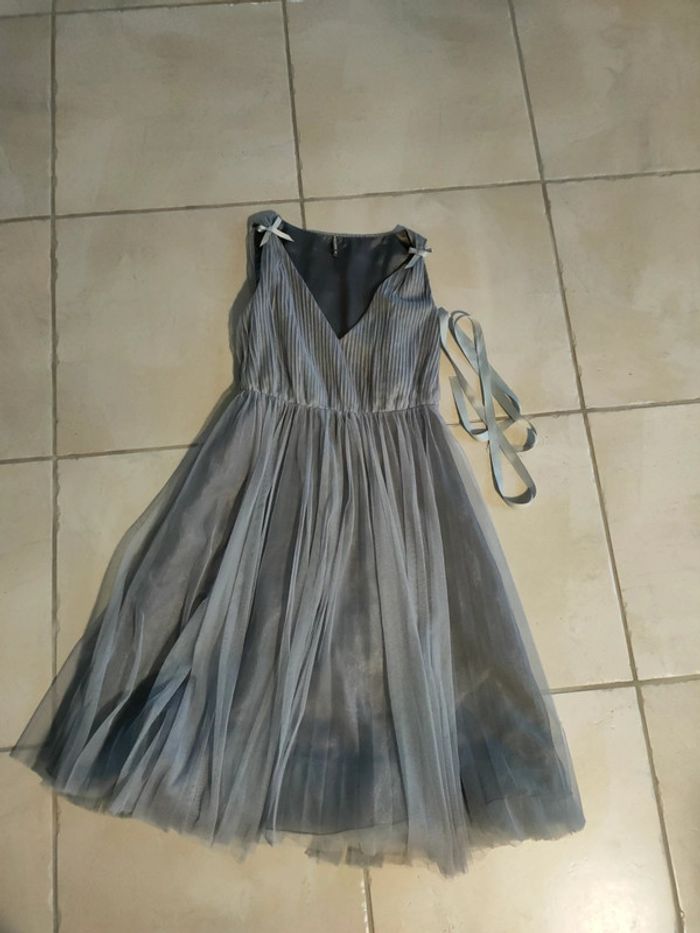 Robe de cérémonie comme neuve Naf Naf Portée une seule fois Toute doublée en tulle D'une superbe qualité avec de belles finitions Taille 36 Veste boléro comme neuve H &M portée une fois toute doublée En taille 38