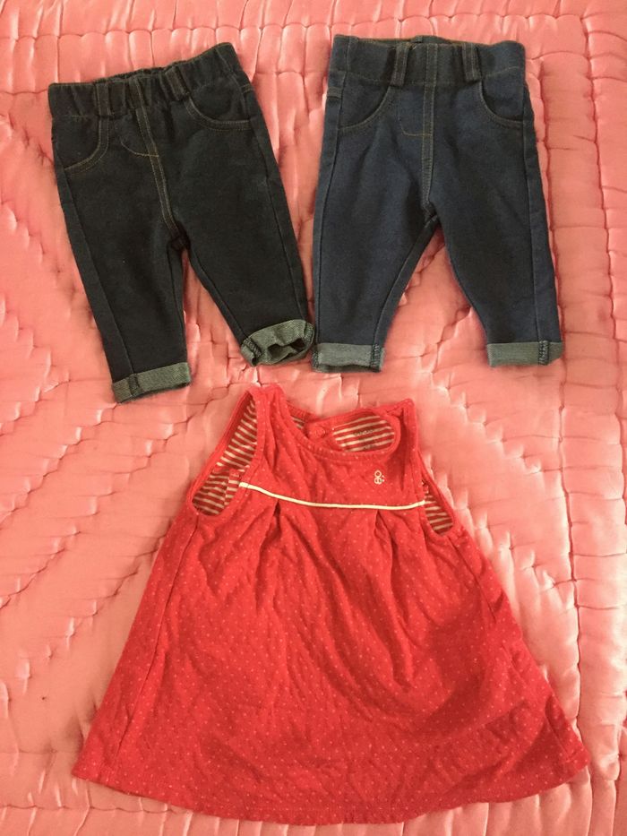 2 pantalons kiabi et une robe obaibi taille 3 mois très bon état