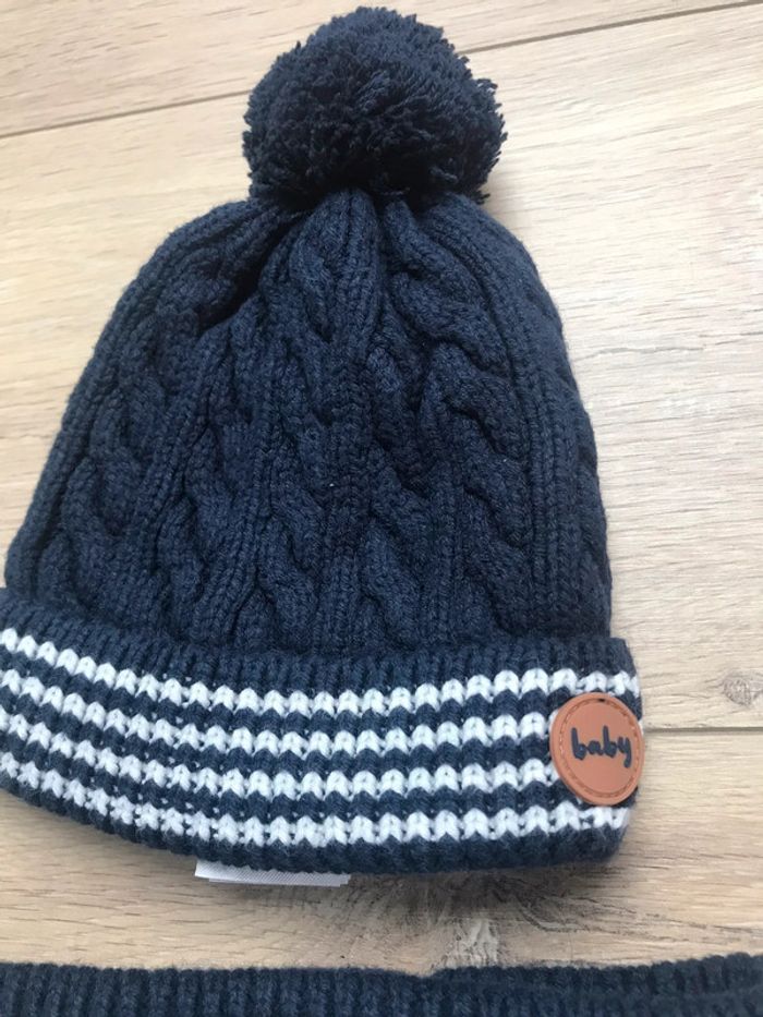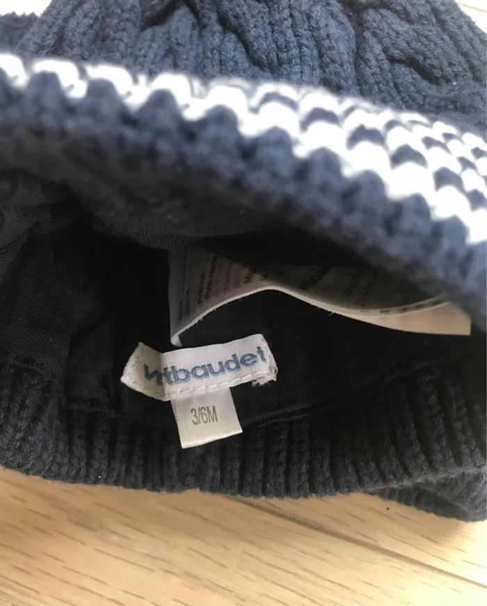 Ensemble bonnet tour de cou et moufles grosse maille marine à rayures blanches vertbaudet 3/6M #cinineaw_garconaccessoires #cinineaw_mixteaccessoires #cinineaw_filleaccessoires
