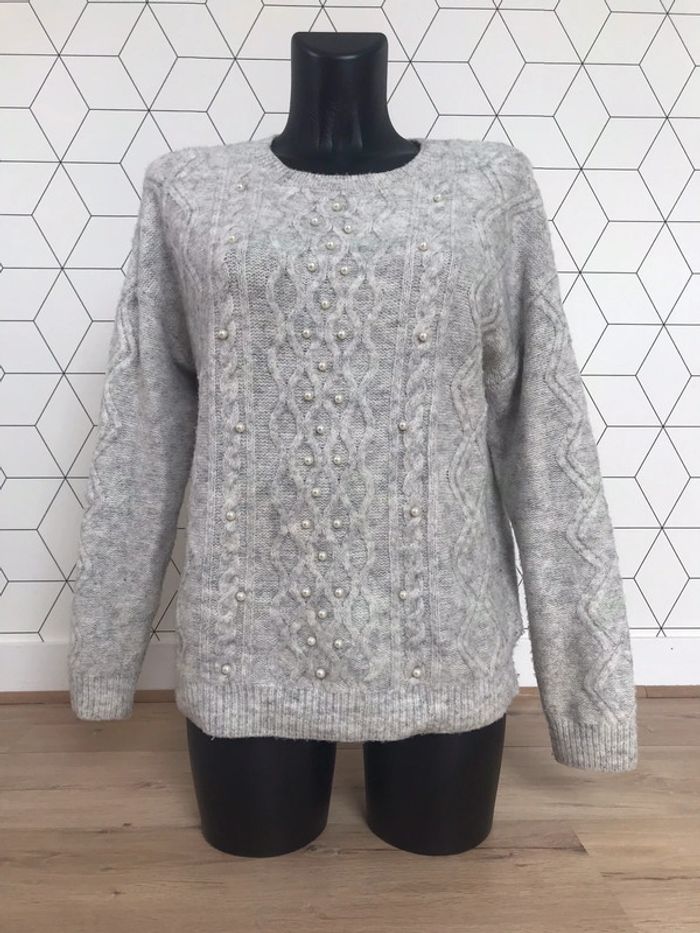 Pull Camaïeu gris chiné à perles (etiquette coupée) correspond à un 36/38 #cinineaw_femme36 #cinineaw_femme38