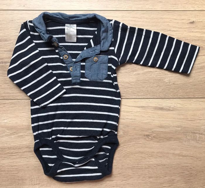 Body polo 2/4M h&m mariniere #cinineaw_garcon3m