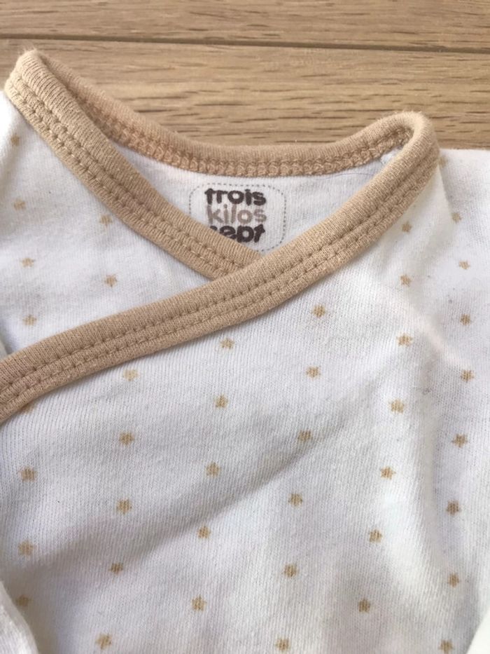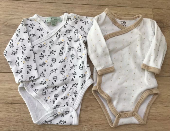 lot de 2 bodies mixtes 1m ouverture en cache cœur par l’avant manches longues, blancs à motifs un mes petits cailloux, un trois kilos sept #cinineaw_fille1m #cinineaw_garcon1m #cinineaw_mixte1m