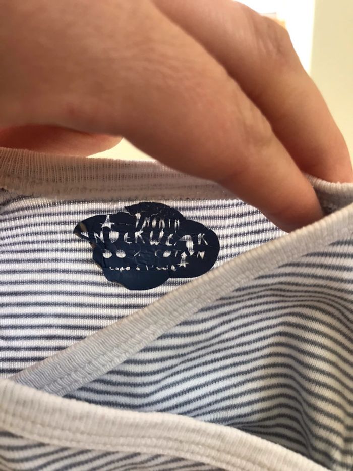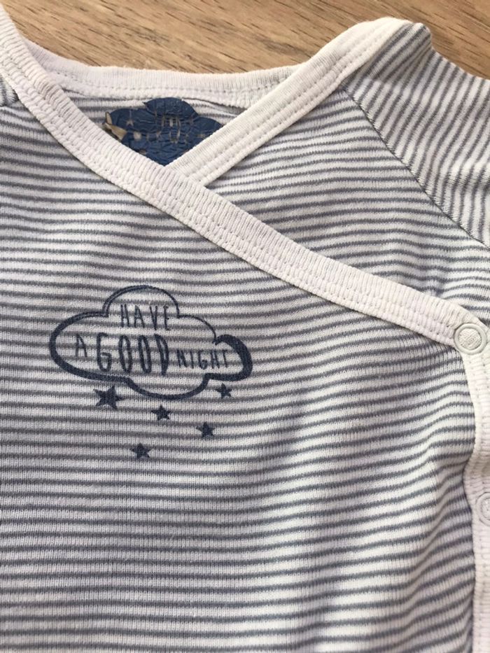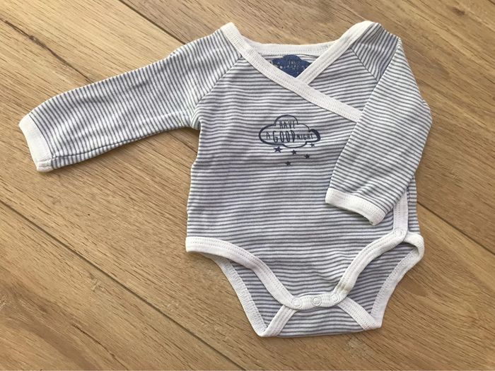 Body mixte 1m tape à l’œil rayé bleu et blanc ouverture croisée sur l’avant #cinineaw_mixte1m #cinineaw_fille1m #cinineaw_garcon1m