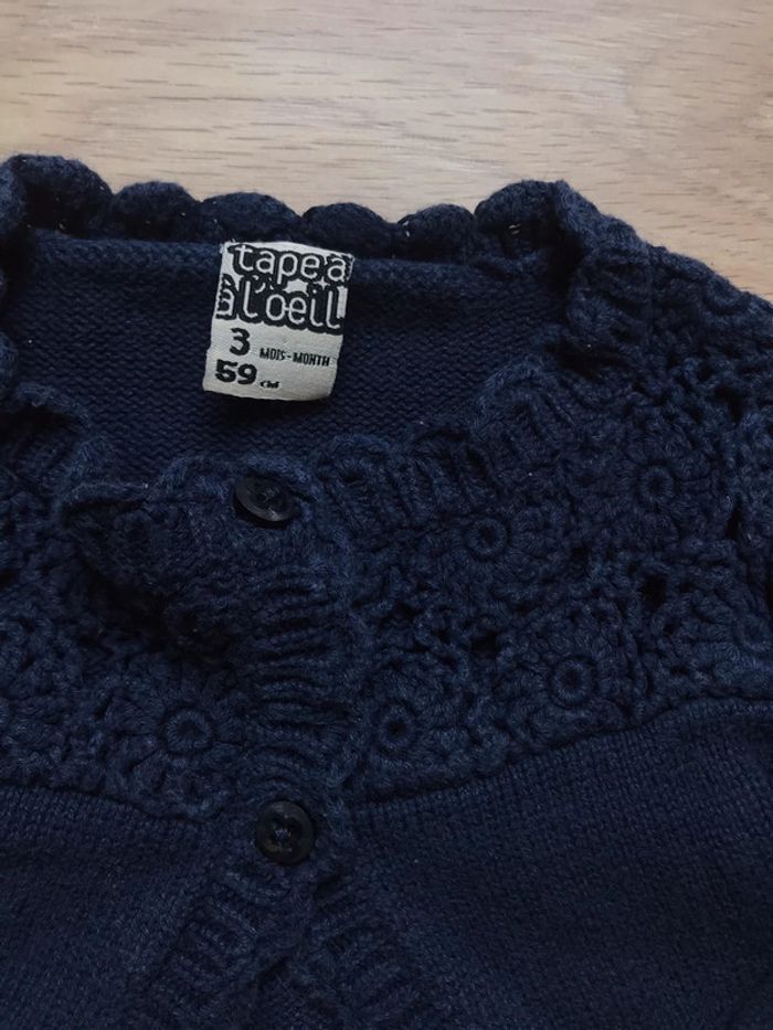 cardigan fille 3m bleu marine avec détails maille crochet #cinineaw_fille3m