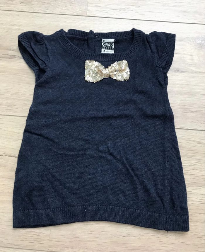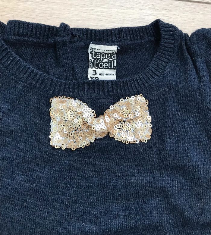 robe pull bleu marine avec noeud doré tape à l’œil 3 mois #cinineaw_fille3m