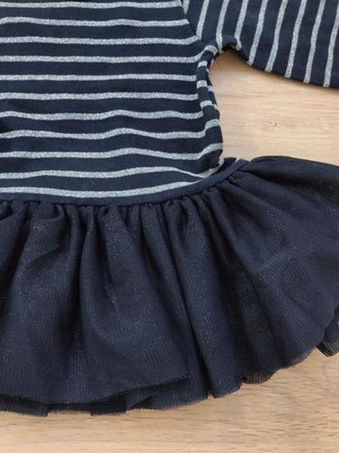 robe petit bateau 3M bleue marine à rayures argenté à paillettes jupe en tulle #cinineaw_fille3m