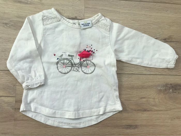 tee shirt tape à l’œil 3M manches longues girly motif vélo et dentelle aux épaules #cinineaw_fille3m