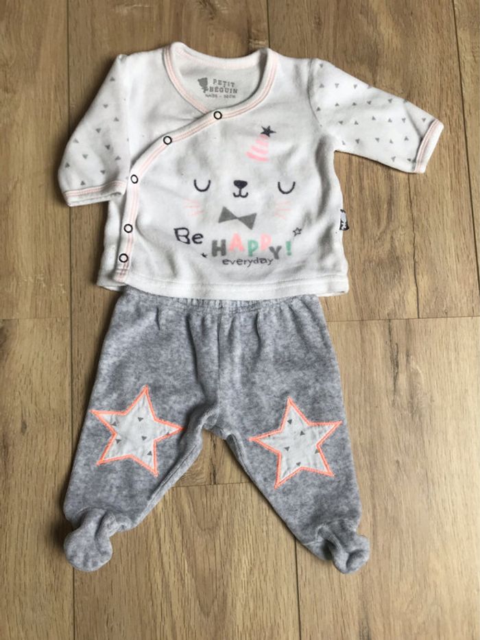 pyjama naissance petit béguin 2 pièces avec ouverture par l’avant sur le haut, velours Un peu jauni au col #cinineaw_fillenais #cinineaw_mixtenais #cinineaw_garconnais