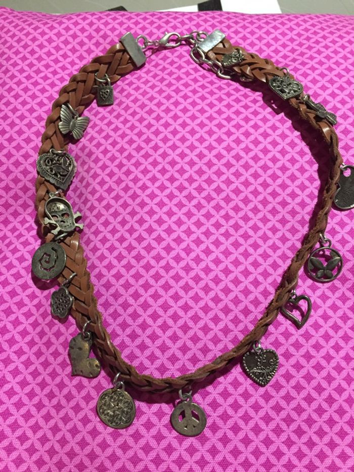 Collier cuir avec breloques neuf - photo numéro 3