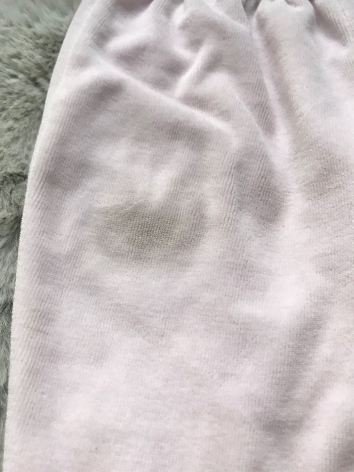 Pantalon à pieds Velours rose pâle Tâches (photos) Pantalon à rayures Ouverture par pressions aux jambes Bouloches