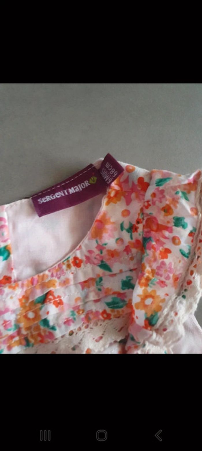 Mise 1 fois. Achetée trop juste Taille 6 mois. Très belle pour cet été. Détails dentelle