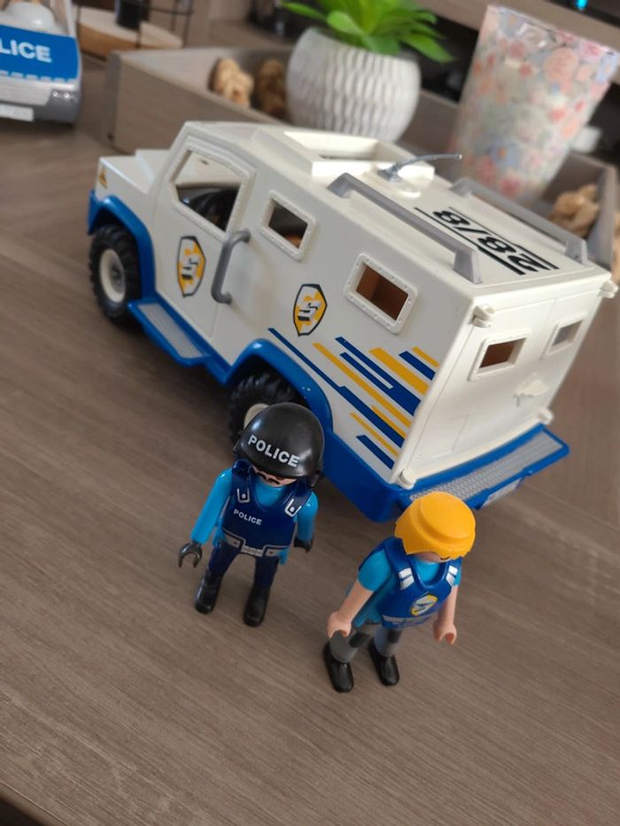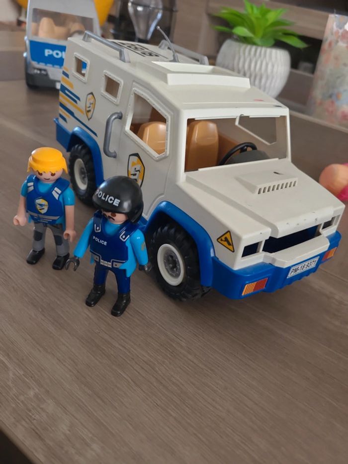 Camion et 2 policiers Petites marques sur le camion qui doivent partir avec du dissolvant