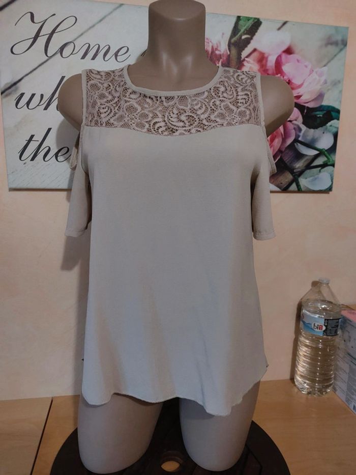 Tee-shirt épaules dénudées avec col en dentelle #Lauradamienfemme40